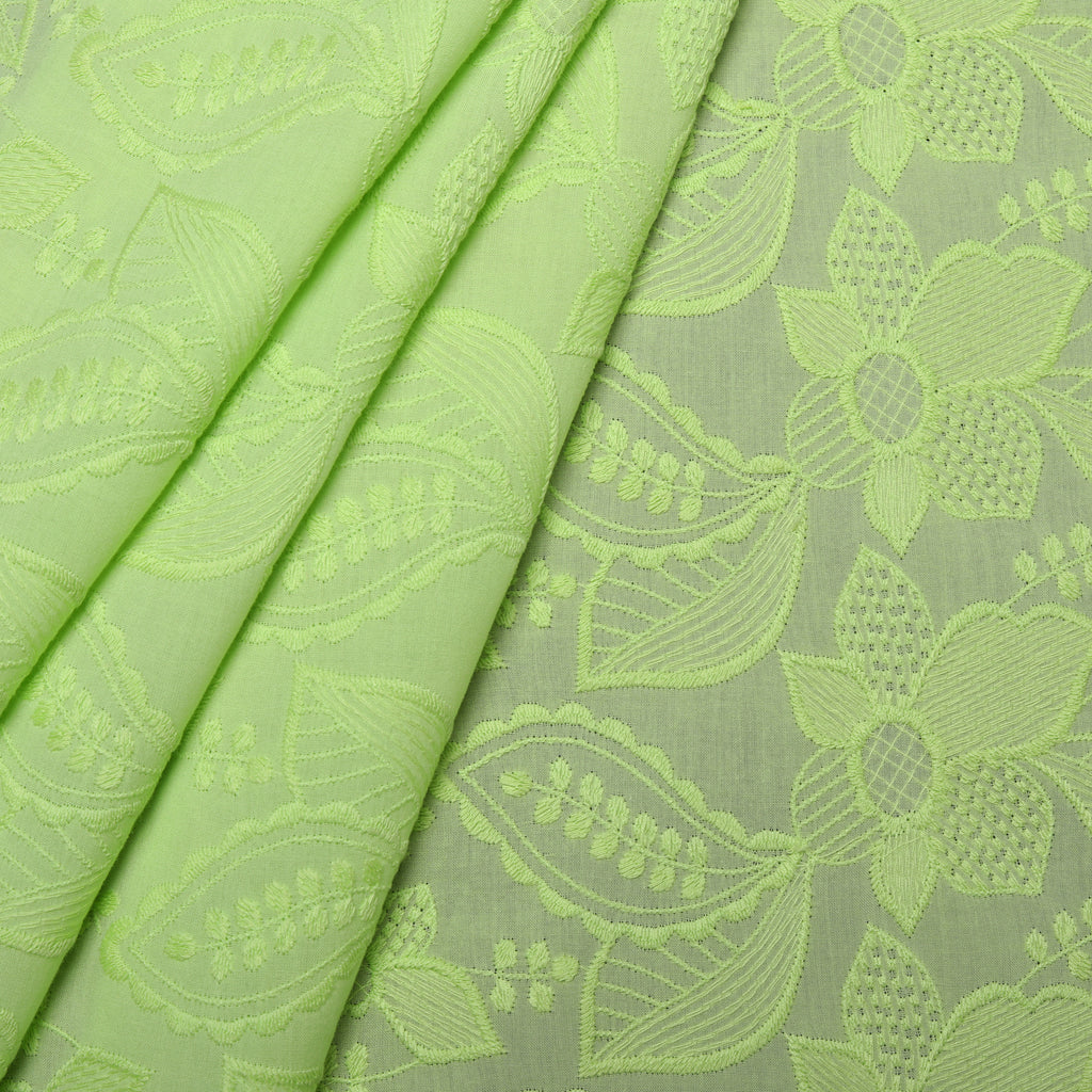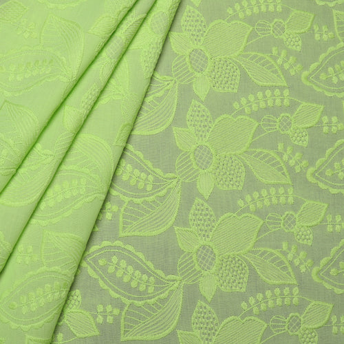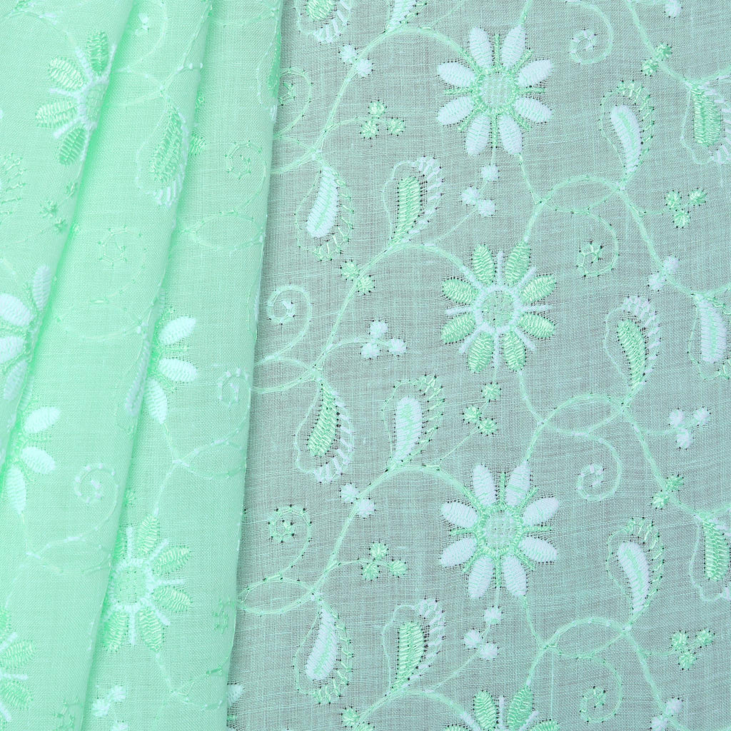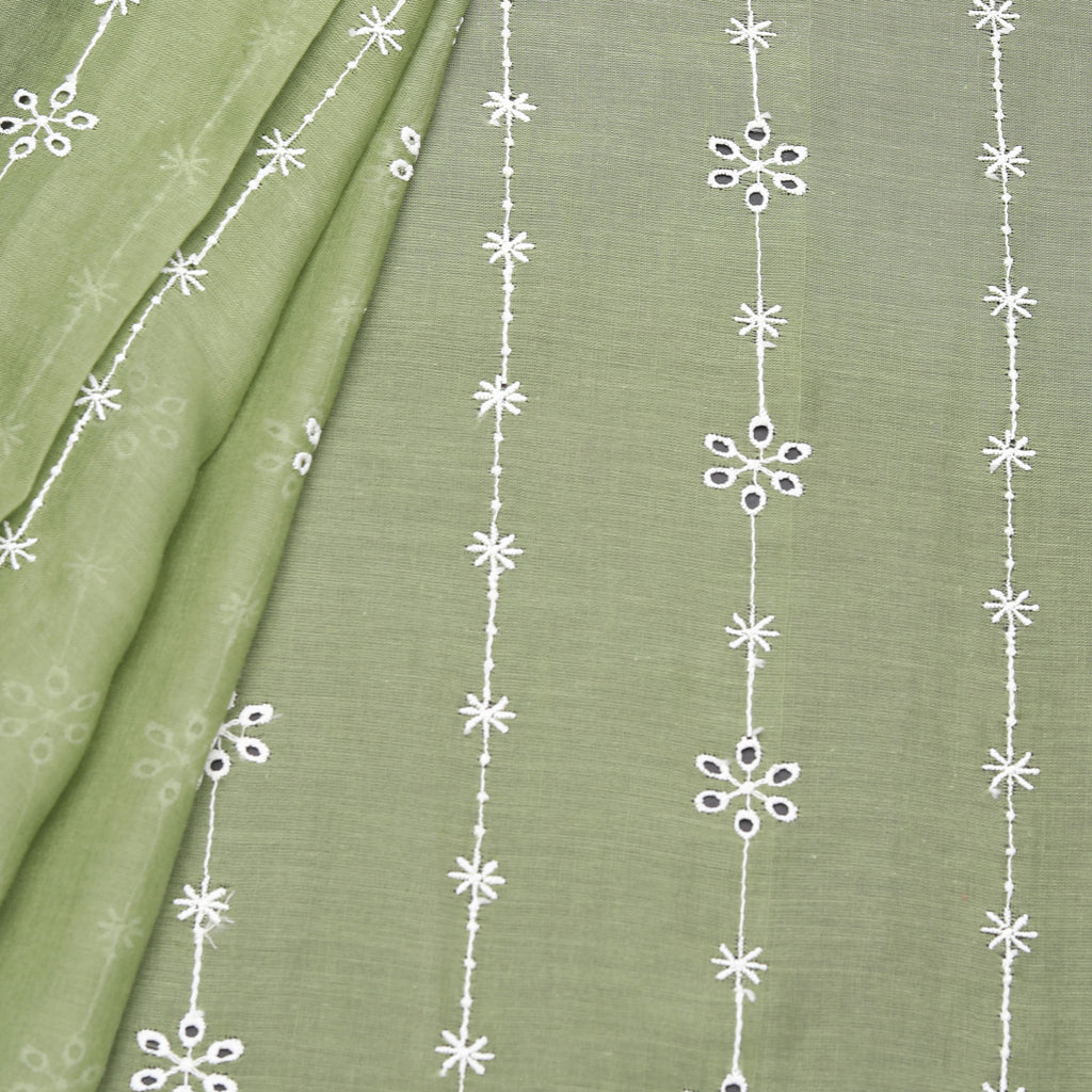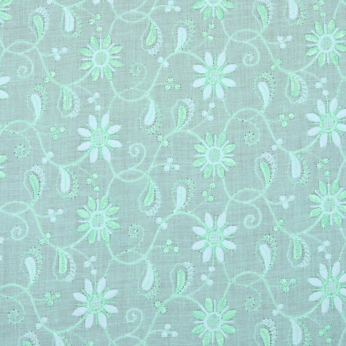Green Geometric Embroidered Cotton Fabric