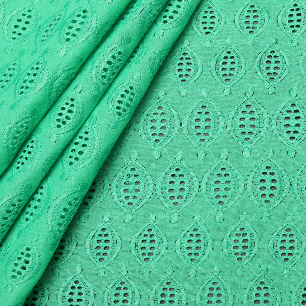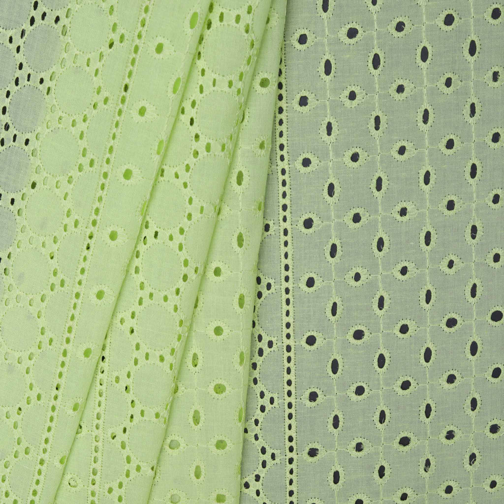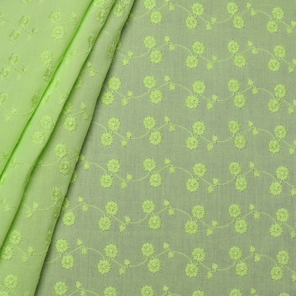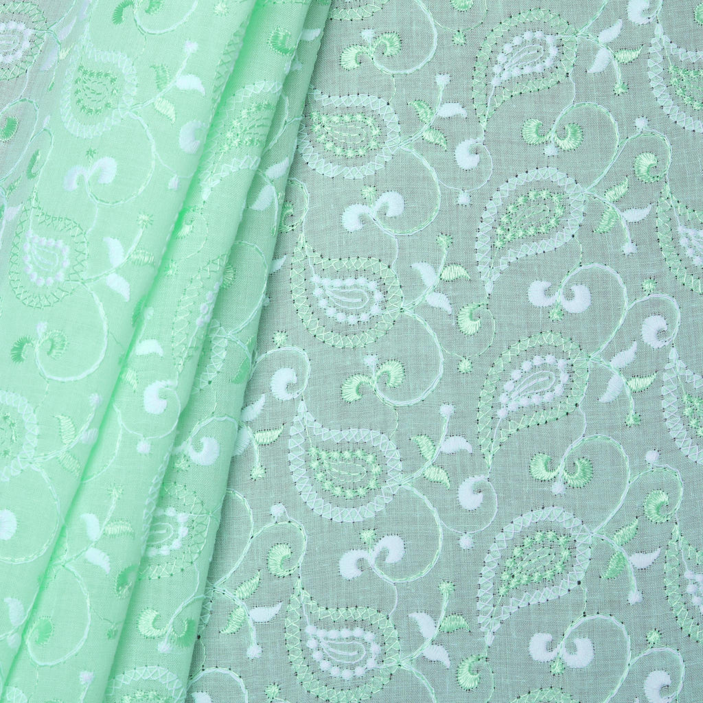 Green Geometric Embroidered Cotton Fabric