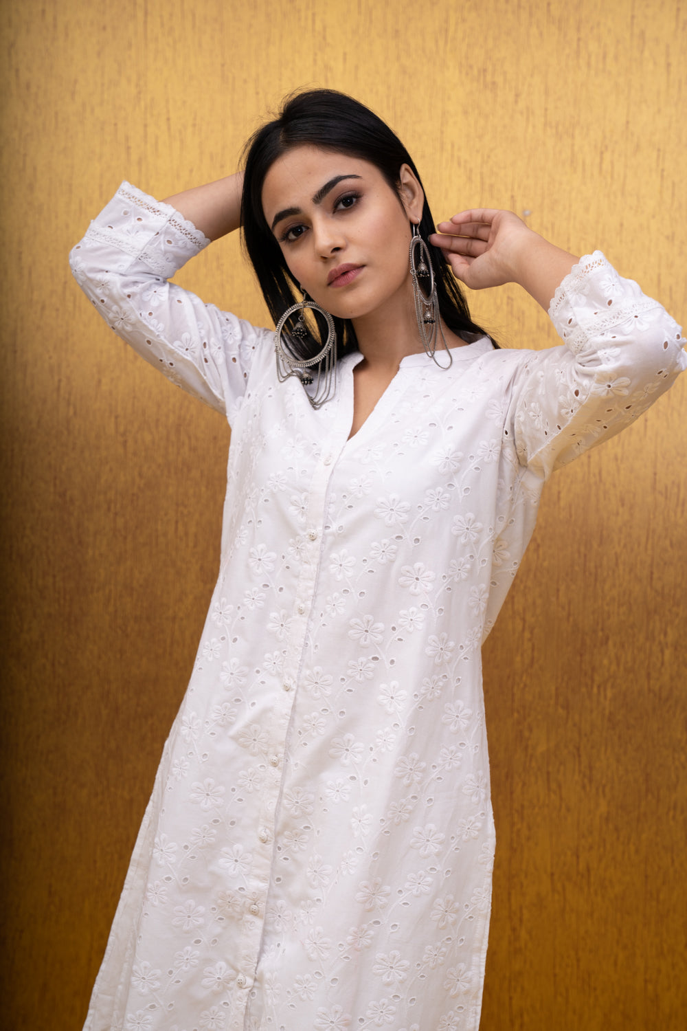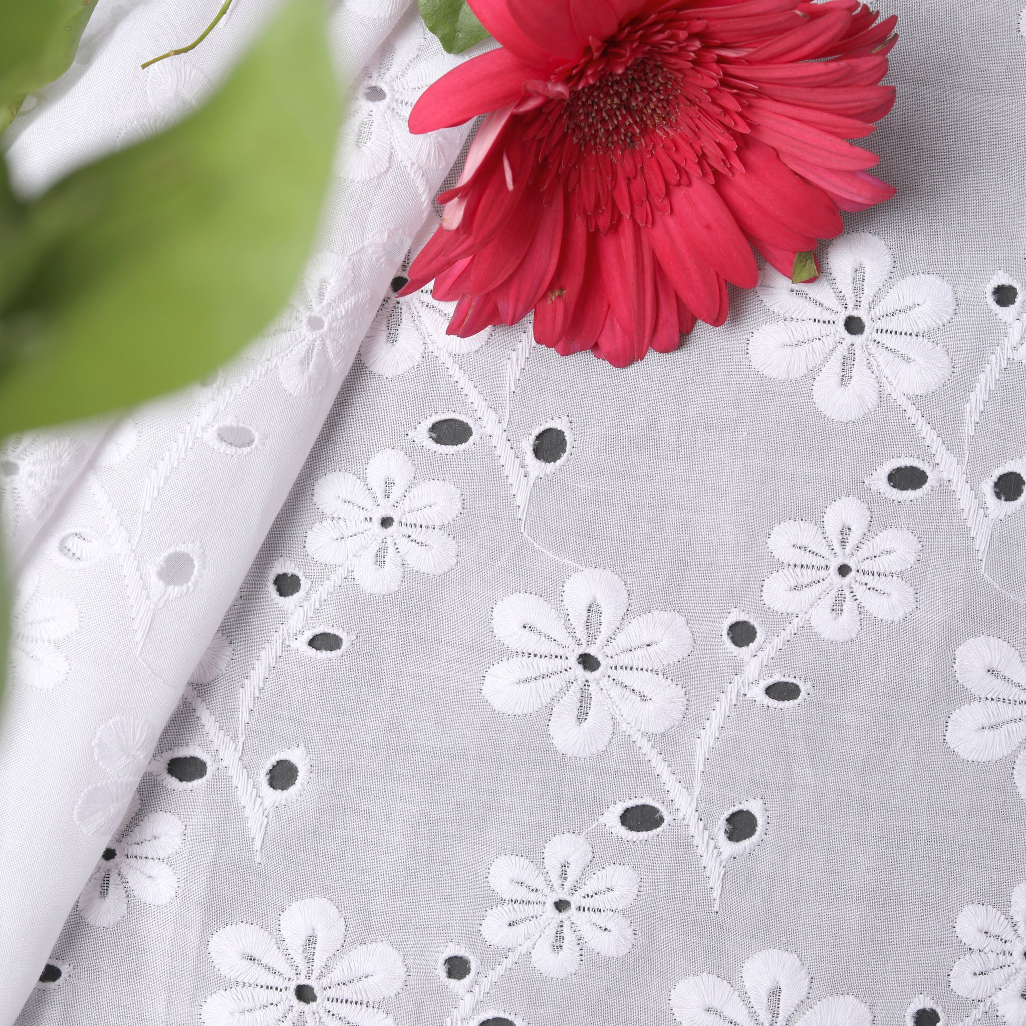 100% Premium Fine Cotton based Embroidered Fabric in Width = 46 Inch, Cut length 1 mtr and above